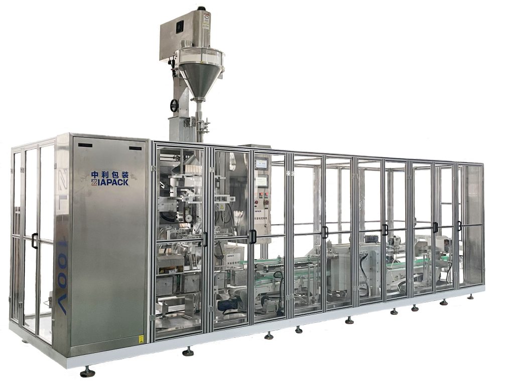 Denne maskinen inkluderer ett sett ZL520 vertikal posefremstillings- og forseglingsmaskin. ett sett ZL2000 skruemålemaskin, ett sett ZL100V enkelt vakuumkammerpakkemaskin, og ett sett utgangstransportbånd. Denne maskinen er mye brukt for pakking av matapotekkjemikalier og andre produkter i pulver eller lite granulat. Som kaffepulver, gjærpulver hvetemel og så videre. Hele maskinen vedtar innsiden pumping for å vakuumprodukt. Vakuumgraden er veldig høy og pakkehastigheten er veldig høy kan nå 8 pose/min. Det ferdige produktet er veldig fint og har en lang holdbarhet.
