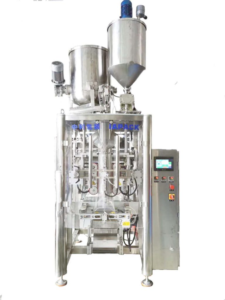 Denne enheten ble utviklet for behovene til flytende og viskøse produkter. Enheten er sammensatt av en fugemaskin og en pakkemaskin; emballasjemaskinen har en enkel struktur og er enkel å betjene; maskinen integrerer funksjonene posefremstilling, fylling, forsegling og telling. Den bruker en servomotor for å trekke filmen og har en funksjon for automatisk avvikskorreksjon.