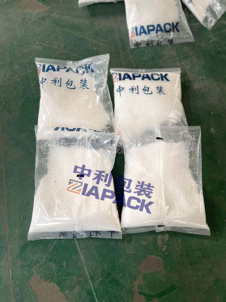 Hele maskinen laget av Stainless Steel 304, Denne maskinen er utstyrt med poseproduksjon, skjæring, kodeutskrift osv. Siemens PLC og berøringsskjerm,Panasonic servomotor, japansk fotosensor, koreansk luftventil, etc..