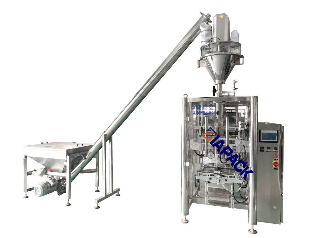 Auger fyllemaskin Mørkpudder liten vertikal form fylleforseglingsmaskin brukes hovedsakelig til pakkepulver og melprodukter, som ernæringspulver, baby mat, sesampasta, salt, sukker, mel, stivelse, smaker, melkepulver, albumenpulver etc.